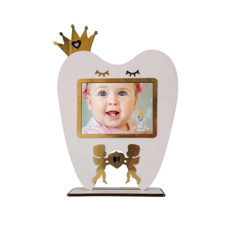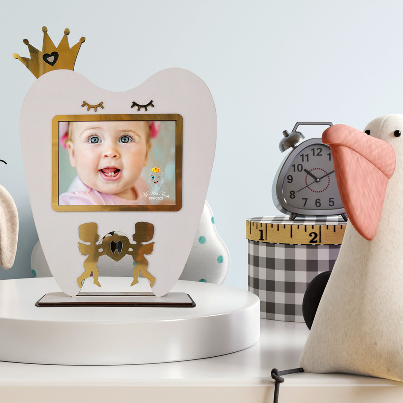 استند و قاب عکس طرح دندونی ماوراء با طراحی جذاب و ساخت با کیفیت میتواند به عنوان بهترین وسیله برای ثبت خاطره به یادماندنی رویش اولین دندان کودک استفاده شود. ابعاد بزرگ آن در زیبایی بخشیدن به فضای اتاق کودک کمک بسیاری میکند. ابعاد تصویر قابل نصب در این قاب 13 در 18 سانتیمتر میباشد.