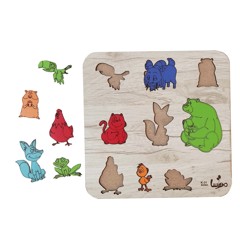 جورچین زیبای حیوانات که شامل 9 حیوان میباشد و جنس این جورچین زیبا از چوب میباشد که بسیار مقاوم و با کیفیت است این پازل زیبا از حیوانات موش بز طوطی گربه روباه خرس قورباقه جوجه و مرغ تشکیل شده است