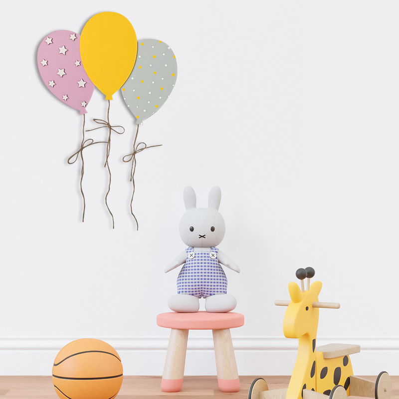 دیوارکوب تزئینی اتاق کودک ماوراء طرح بادکنک 3 تایی ساخته شده از ام دی اف میباشد. متریال استفاده شده در این کالا از بهترین نوع بود و با استفاده از رنگ های ضد حساسیت با دقت و کیفیت بالا رنگ آمیزی و عرضه میشود. این دیوارکوب زیبا را میتوان در نقاط مختلف اتاق کودک و نوجوان و حتی محیط های کار نصب و از زیبایی آن لذت برد. نصب این کالا بر روی دیوار با استفاده از میخ انجام میشود.